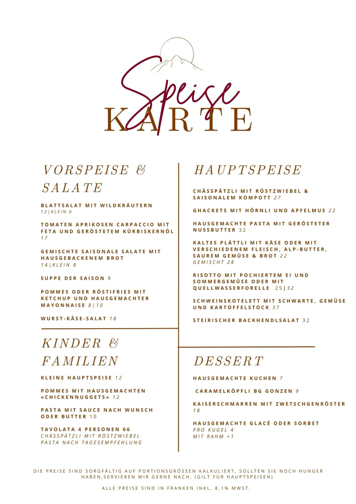 Zusätzlich zur Speisekarte haben wir täglich 2 verschiedene Wildspezialitäten auf unserer Tageskarte.